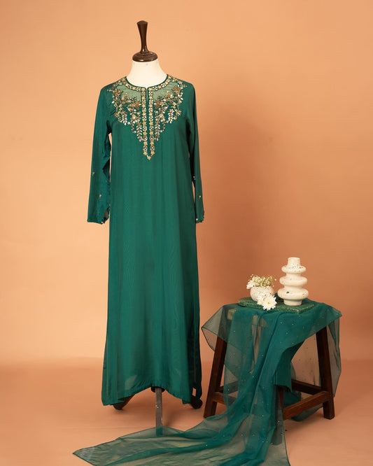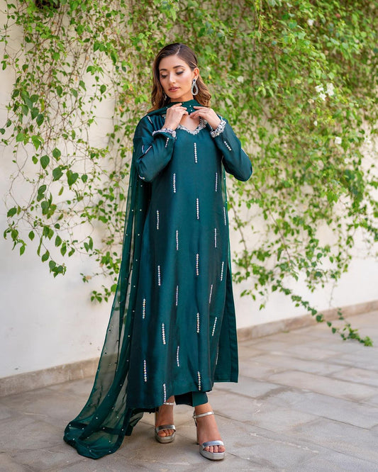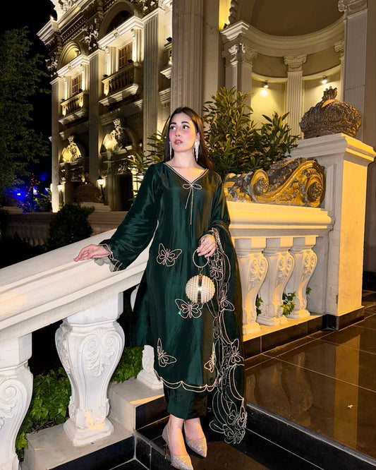 QAFLA COLLECTION TITLI BOTTEL GREEN UNSTITCHED